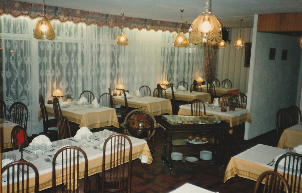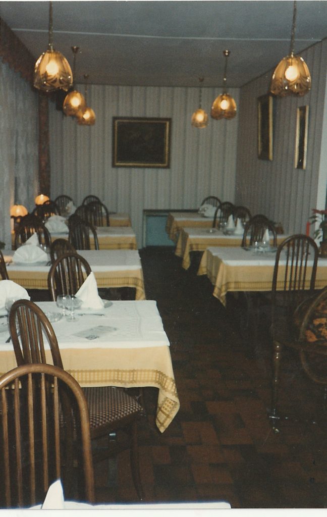Me voilà donc revenu à Delme, en cuisine au côté de ma mère. Un peu trop rapidement, usée très certainement par une vie intense qu’elle avait conduite jusque-là. Elevée 4 garçons, construire la douzième borne, et vivre une situation personnelle éprouvante. Elle me laissa les commandes de cette fameuse 12ème borne. D’abord en cuisine ou mes débuts furent très laborieux. Voyant ce que faisait ma mère et ce que j’avais appris à l’école hôtelière, j’étais terrorisé, car ne sachant pas cuisiner des plats comme la tête de veau, le couscous, la choucroute, une potée Lorraine etc. et qui était le fonds de commerce de l’époque, j’appréhendais le moment ou le personnel découvrirait mon inculture locale.